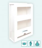 Practical and hygienic the Hygia medical mask Dispenser can be wall hung for easy of use and to keep surfaces clear. Easy to load and easy to dispense the Medical Mask Dispenser can hold three boxes at the same time saving time for refilling. It can be used for a variety of mask brands. Wall mounted for ease.